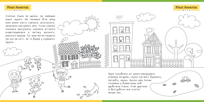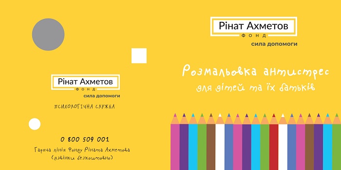 Фонд Ріната Ахметова з 2014 року допомагає маленьким українцям долати психологічні травми, спричинені війною. Ще з початку збройного конфлікту на Донбасі провідними психологами Фонду була розроблена розмальовка-антистрес для дітей.
